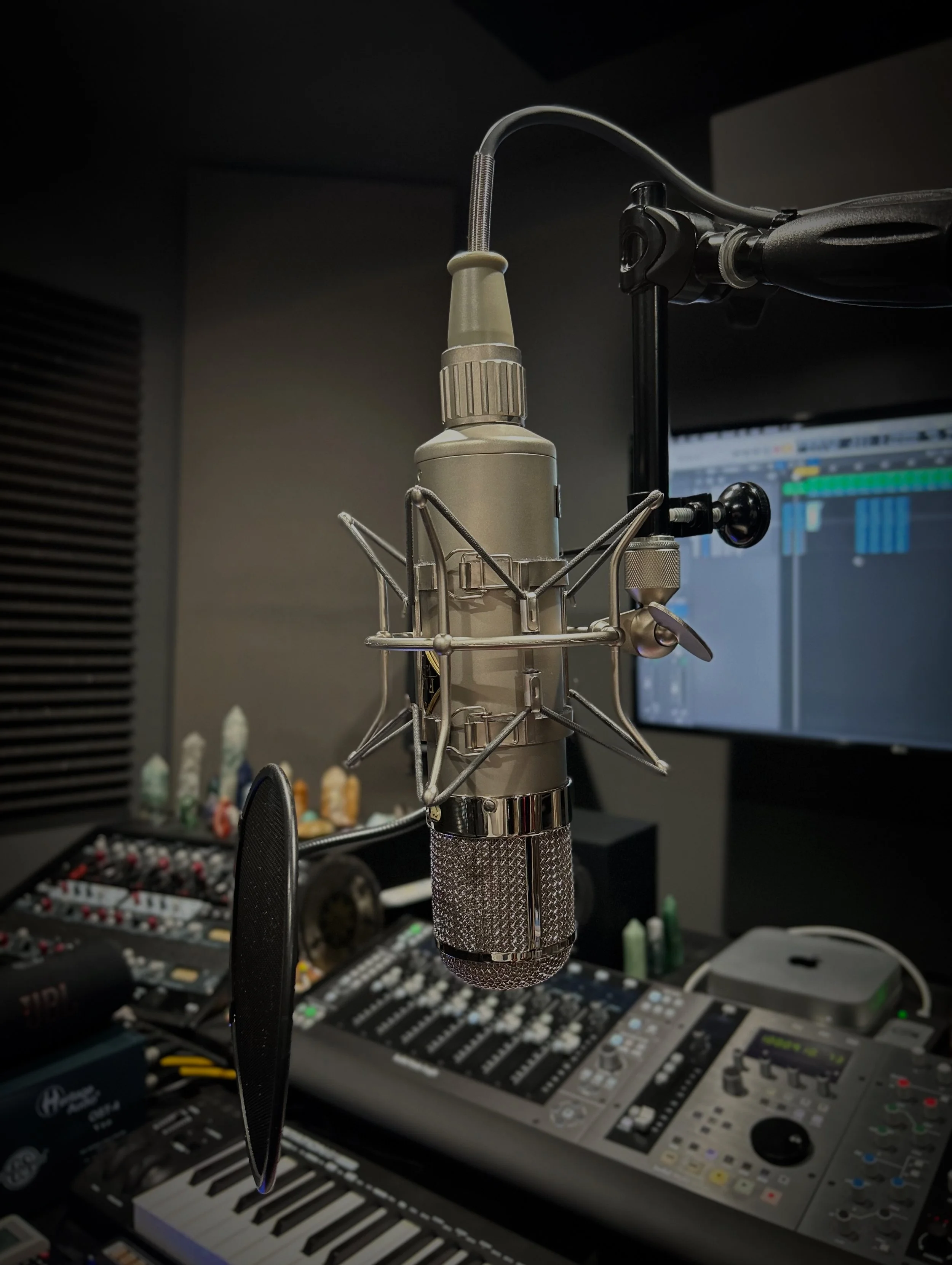 The RSP studio uses a Flea 47 featuring the upgraded F47 capsule and Telefunken tube and a Neumann U87ai. For stereo recording, we use a pair of Neumann KM 184’s. We also have mics by Lauten Audio, Warm Audio, Shure, Audix, and Lewitt.